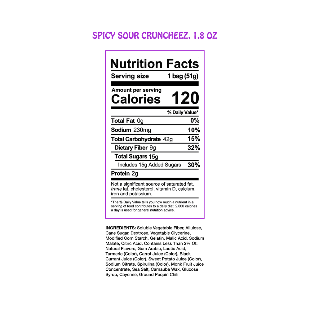 A fiery twist on the Sour Cruncheez you know and love. Made with real peppers, Spicy Sour Cruncheez bring all the mouth-puckering zest of Sour Cruncheez with an added spicy kick that’ll punch you in the tastebuds. They’re sour then spicy.